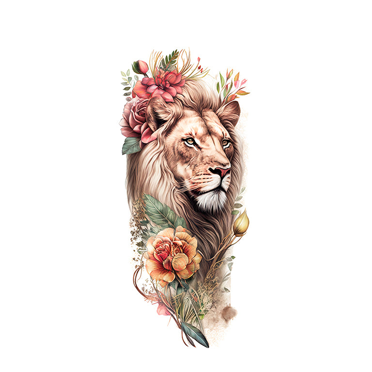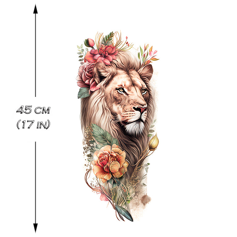 Tatouage éphémère "Colorful Floral Lion 2 Sleeve"